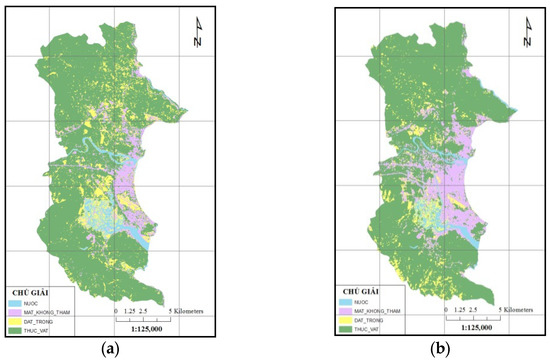 Distribution of Land cover of Nha Trang city. (a) Land cover in 2007; (b) Land cover in 2017.