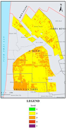 Forest fire sensitivity map of the U Minh Ha forest in dry season 2015–2016.
