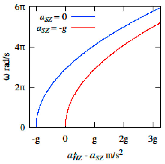 Possible backspin angular velocities as a function of the vertical fingertip acceleration relative to the shoulder for the shots with the vertical shoulder acceleration with and .