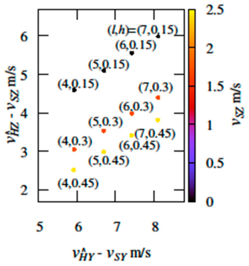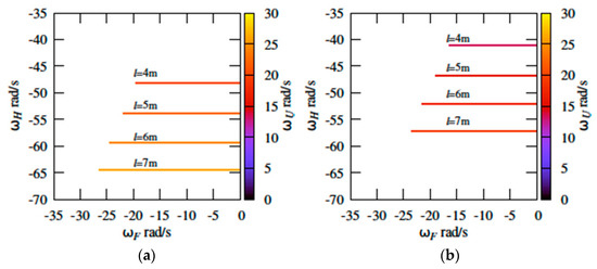 The model estimates the hand and forearm angular velocities for the different horizontal shot distances of h = 0.15 m and h = 0.30 m as shown in Figure 5. For the shot with the low release and large vertical shoulder speed at release (Figure 5b), smaller magnitudes of the hand and forearm angular velocities are required. We have also pointed out that upper arm rotation contributes to the vertical component of release velocity of the ball, and the forearm and hand actions mostly produce the horizontal component of ball release velocity and the release backspin for the shot with zero shoulder speed at release [10] (pp. 447–448). The upward shoulder speed at release reduces the magnitudes of the hand and forearm angular velocities, although the vertical shoulder speed at release contributes to the vertical fingertip velocity relative to the shoulder and does not contribute to the horizontal fingertip speeds relative to the shoulder (Figure 3). The direction of the angular velocity of the upper arm is opposite to that of the forearm and hand at release. When the magnitude of the upper arm angular velocity increases, the shooter must produce large magnitudes of the hand and forearm angular velocities. For the shot with upward shoulder speed, the angular speeds of upper arm, forearm and hand can be reduced.