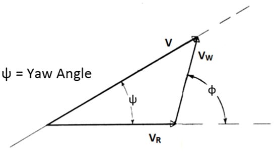 Yaw Angle (ψ) as a function of road speed (VR), wind speed (VW) and wind direction (φ).