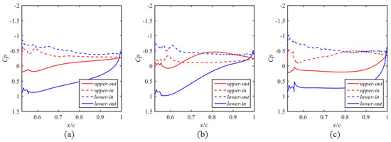 Figure 7 compares the pressure distribution of the upper and lower blades of each model at