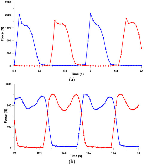 (a) Forces measured during fast running and (b) forces measured during medium speed walking.
