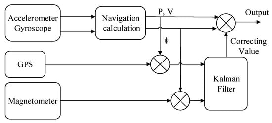 The GNSS/IMU outdoor navigation program is shown in Figure 1. The GNSS/IMU outdoor navigation using loose integrated mode by feeding the measured value of IMU and GNSS such as position and velocity into Kalman filter for estimating and correcting the error [].
