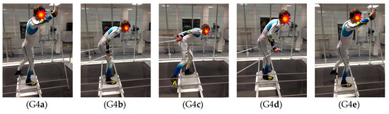 Pictures (G4a–G4d) present sagittal plane images of the skier performing the selected four static positions representing the free style gear 4 technique. Picture (G4e) is similar to picture (G4a) and completes the range of motion.