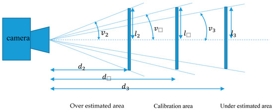 If the object is moved further away from the camera at distance , the new length will be detected as and the new angle is . This results in a length error that is described as (6).