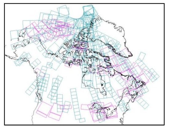 - RADARSAT Mosaics, Canadian Ice Service, Environment and Climate Change Canada. Available online: https://www.canada.ca/en/environment-climate-change/services/ice-forecasts-observations/latest-conditions/products-guides/satellite-images-mosaics-animations.html (accessed on 1 February 2018).