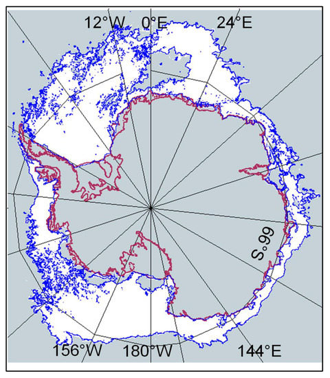 - Gloersen, P.; Campbell, W.J.; Cavalieri, D.J.; Comiso, J.G.; Parkinson, C.L.; Zwally, H.J. Arctic and Antarctic Sea Ice, 1978–1987: Satellite Passive-Microwave Observations and Analysis (NASA Special Publication SP-511); NASA Goddard Space Flight Center: Greenbelt, MD, USA, 1992; p. 290. [Google Scholar]