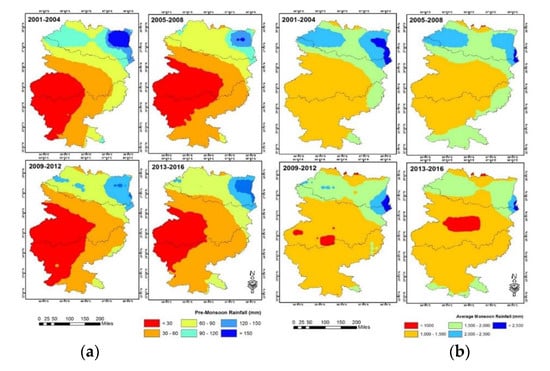 - Rupakumar, K.; Pant, G.B.; Parthasarthy, B.; Sonatak, N.A. Spatial and sub seasonal pattern of the long term trends of Indian summer monsoon rainfall. Int. J. Climatol. 1992, 12, 257–268. [Google Scholar]
