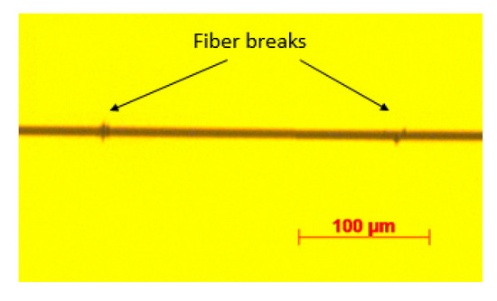 After waveform acquisition during SFFT, the signals source position was determined. A good agreement has been found between the number of localized sources detected by AE and fiber breakage observed by means of transmission optical microscope (Figure 4).