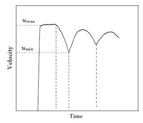 The oscillation period of the velocity is often used to determine whether the material is completely spalled. The thickness of the spall scab derived from the period is given by