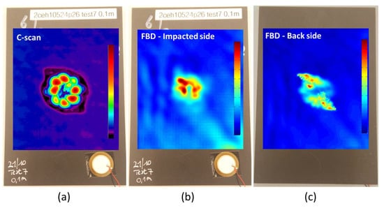 Figure 2(c.2–c.3) show the FBD and the C-scan of the sample after respectively the first and second impact cycle. The impacting procedure results in both an increased vibrational response and an increase in contrast of the C-scan.