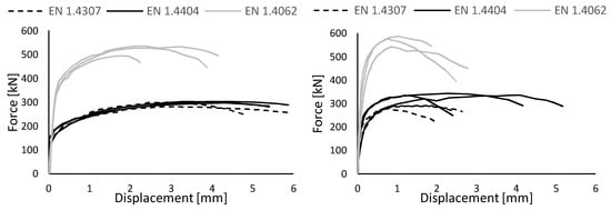 - European Committee for Standardization (CEN). Eurocode 3: Design of Steel Structures—Part 1–4: General Rules—Supplementary Rules for Stainless Steels; Brussel CEN: Brussel, Belgium, 2015. [Google Scholar]