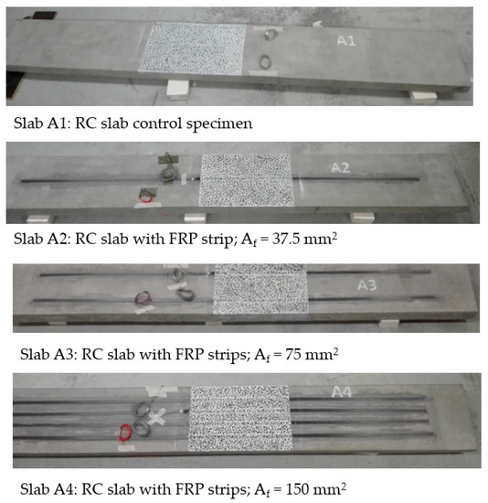 Specimens of RC slabs without and with externally bonded reinforcement (EBR).