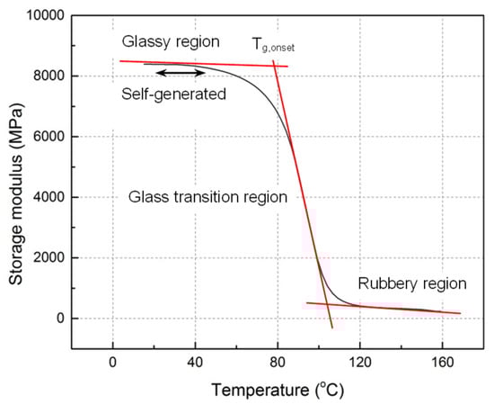 Dynamic Mechanical Analysis (DMA) was performed and shown in Figure 2. It was observed that the storage modulus of the examined material was almost constant at temperatures lower than 45 °C.