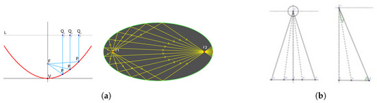 - Holland, F. The Reflective Property of a Parabola. Ir. Math. Soc. Bull. 2010, 66, 87–90. [Google Scholar] [CrossRef]