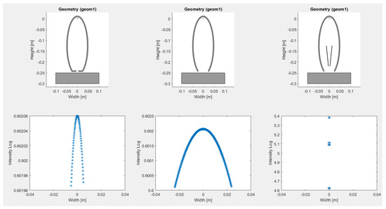 An additional Matlab®-script is used to calculate the impact of inaccurate assembling of the reflector and excitation source. Multiple placement heights of the lamp are simulated to visualise the influence of the error. This error is calculated for three different geometries to select the most adequate one out of the simulated geometries. Those geometries are in addition compared to three experimental set-ups. Two of them are shown in Figure 1. Figure 4 shows the visual output of the Matlab®-script used to visualise the impact of the misplacing of the halogen lamp.