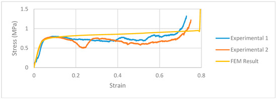 Comparison of block stress strain between experiment and FEA for coated block.