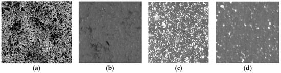 SEM speckle images at different temperatures. Radiation heating: (a) at ambient temperature 25 °C; (b) 700 °C. Resistance heating: (c) at ambient temperature 25 °C; (d) 900 °C.