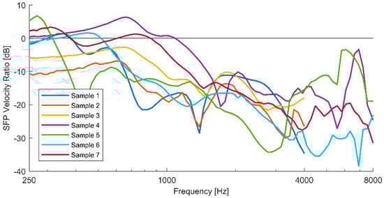 - The SFP velocity ratio can be positive and is close to 0 dB for most samples at low frequencies.