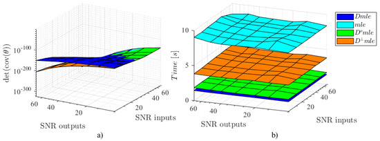 The mean execution time for the different estimators is shown in the Figure 2b. According with the results, the estimator requires less time while the estimator expend at least one order of magnitude more. The and the estimators present execution times lower than the half required for the being lower for the estimator where the output–output relations are explicit.