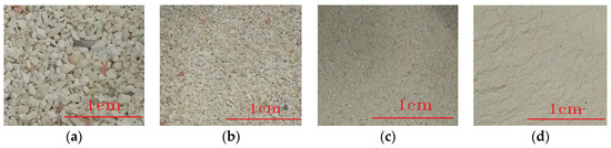 Coral sand with different particle sizes: (a) 1.18–0.60 mm (b) 0.60–0.30 mm; (c) 0.30–0.15 mm; (d) 0.15–0.075 mm.