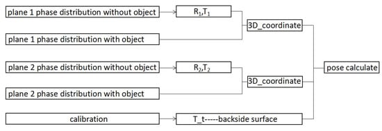 When the tested object is placed above the monitor, the same pixel will see a different point of the monitor. Then we can get the corresponding world coordinates (x,y,z) via the deformed phase distributions via the known extrinsic parameters.