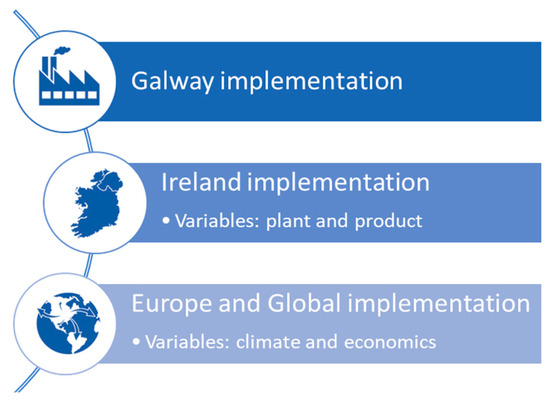 The implementation of the methodology has started in 2013 with a pilot study in a single Irish site located in Galway. The pilot implementation consisted mainly of completing an onsite data gathering exercise (both qualitative and quantitative) and subsequent energy audit. Then the pilot implementation has been expanded to include more facilities in the same region (Cork and Clonmel) over the years, as shown in Figure 2.