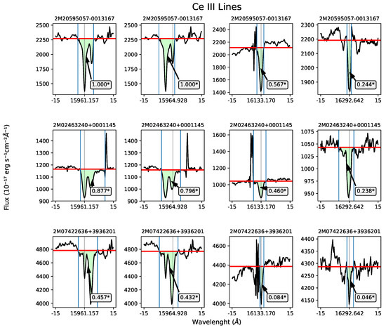 We tested the algorithm searching for cerium III compound (Ce III), which can present several lines in a spectrum. In order to validate it, we have compared our result with the detections of Chojnowski et al., who report 157 chemically-peculiar stars with Ce III absorption lines [3]. Our exploration detected 105 stars in common with measurements taken by Chojnowski. In addition, we detected 975 new objects with presence of cerium. The results were obtained using the parameters shown below: