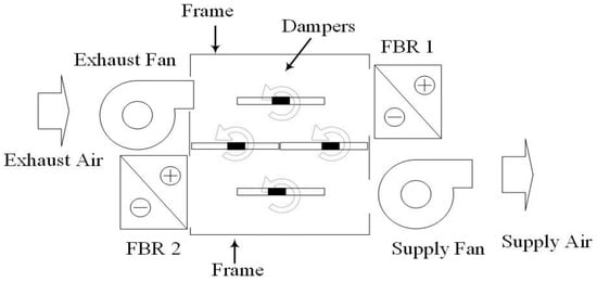 A schematic of an HVAC unit for energy recovery with two FBR cores.