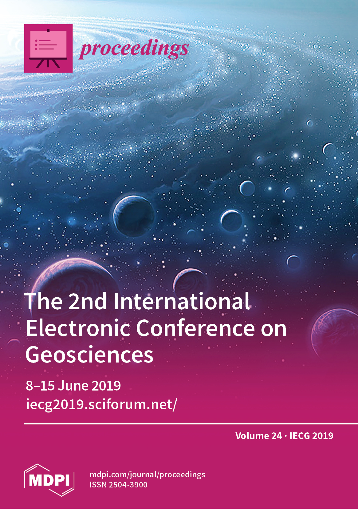 Cover Story: This volume of Proceedings gathers the papers presented at the 2nd International Electronic Conference on Geosciences (IECG 2019), which collected contributions concerning seven thematic areas: Statistical Seismology; Tracers in Hydrogeology; Earth Sciences through Earth Observation; Paleontology and Biostratigraphy; Planetary Geology and Earth Analogs; Geologic Materials: Past, Present, and Future; Modeling Hazards and Impacts from Extreme Storms. We would like to thank all attendees for their participation and all conference committee members for reviewing the papers.