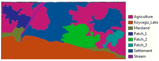 The study area is composed of six land uses, namely agriculture, settlement, sweetgum forests, swamp, Lake Ecosystem, and stream. All classes have different sized neighborhood relations. In order to determine the neighborhood relations of these classes, classification was applied using the RF algorithm. The classification result is shown in Figure 3. Each class is shown in a different color.