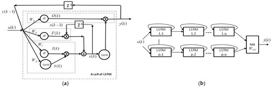 The object of time series modeling using LSTM is to update the weights , , , and , such that the output of the LSTM neural network converges to the system output in Equation (1):