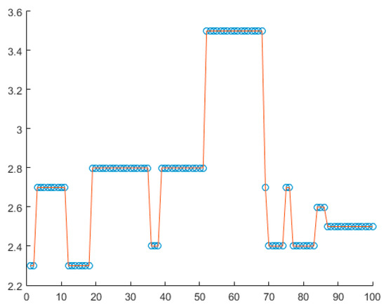 Therefore, it is then possible to take the zero-order hold model of the time series generating a new function that nevertheless reproduces the original behavior, keeping all the peaks that correspond to the magnitudes of the events, see Figure 4.