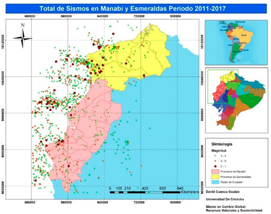 For this reason, Ecuador is considered seismically active. During the past 110 years there have been earthquakes that have been studied for their magnitudes and origins, a clear example being the earthquake of Esmeraldas in 1906, whose magnitude was 8.8 on the Richter scale and which was one of the largest earthquakes in recorded history [2]. Earthquakes are natural catastrophes that cannot be accurately predicted or avoided at present. Thus, this work focuses on previous data that serve as a basis for a map of susceptibility, and a demonstration of seismic scenarios, all of which depends on land, geographical location, load on the ground, and so on. [3].