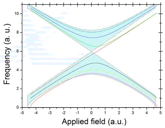 Bulk and bound states in a chain of seven macrospins in Stoner-Wohlfahrt model.