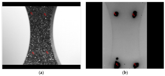 Four pairs of coordinates for obtaining a homography transformation matrix: (a) Visible image, (b) Infrared thermography.