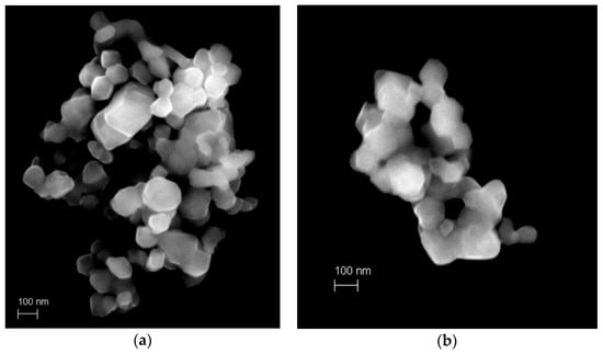 According to SEM images (Figure 2) the ground powder confirms the presence of a significant number of particles smaller than 200 nm, including particles of the order of 50 nm. In accordance with the results of energy-dispersive spectroscopy, transition metals: nickel, cobalt and manganese are present in the material in a ratio proportional to the stoichiometric coefficients in the formula.