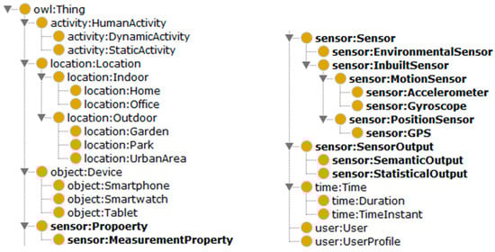 - Safyan, M.; Qayyum, Z.U.; Sarwar, S.; García-Castro, R.; Ahmed, M. Ontology-driven semantic unified modelling for concurrent activity recognition (OSCAR). Multimedia Tools Appl. 2019, 78, 2073–2104. [Google Scholar] [CrossRef]