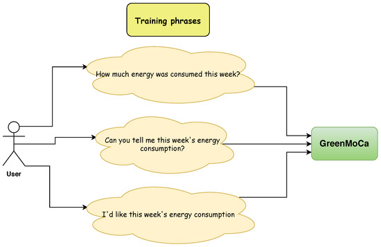 As mentioned above, we need to train the GreenMoCA Virtual Assistant with a set of training phrases to provide proper answers to the user, according to all these kinds of requests. Figure 3 shows an example of training phrases which the user can pose to GreenMoCA system. Thus, the system should provide the same answer regardless of how the user asks the question.