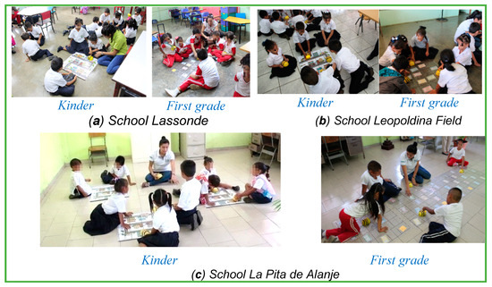 Figure 5 shows the application of some of the activities in a group by each level (kindergarten and first grade) for each of the 3 schools: Lassonde, La Pita and Leopoldina Field, developed during the second stage of the project in the that the students carried out the challenges that were indicated to them, working as a team and understanding better the sequence of programming with which they had to give the instructions to the Bee-Bot.