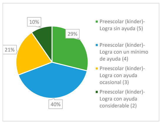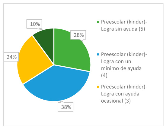 One of the variables evaluated in the pre-test was Robotics Resources and Programming Sequence. In this sense, and based on Table 3, the results of the three schools were analyzed jointly, where the students managed to use “Bee-Bot” and solve the challenges with a programming sequence of a minimum of help in 38%, 28% manage to solve them without help, 24% manage to solve them with occasional help; while 10%, that is, five students solve with considerable help as shown in the red box. This can be seen in Figure 7.