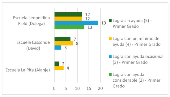 Table 3 shows the results in terms of the number of students who obtained lower scores in the pre-test. A student from La Pita school and four students from Leopoldina Field needed considerable help, framed in red. While, at Lassonde school, the lowest score is reflected as occasional help framed in green. In the three schools most of the students managed to develop the activity with a minimum of help and without help.