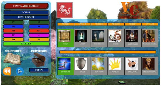 The students use VirtualCraft at the classroom, by means of their smartphones. At the classroom they may receive points from the teacher if they perform adequately in their normal duties at the classroom. They may also acquire and use privileges, which are actions in the real world. For example, a priest of the “master” level may acquire and use the privilege of their team having five extra minutes for a test. Many privileges apply to the complete team, so the students are interested in the evolution of all the members of the team. The levels and points obtained at class have impact in the virtual world VirtualTouch.
