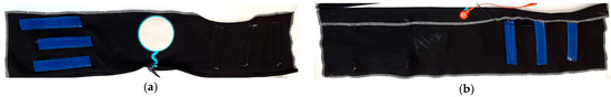Images of the FES sleeve: (a) Front side with electrode and Velcro fastening; (b) Back side.