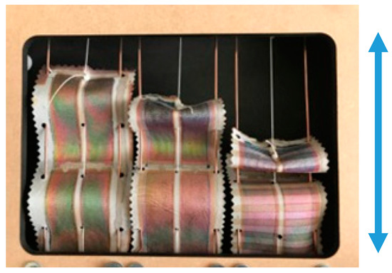 This high temperature annealing required for many DSSC’s eliminates many common textile materials, but organic PV’s offer more choice. Spray coating was used to cover the woven polyester cotton with all the layers for an organic PV, after planarizing the fabric with a screen-printed polyurethane layer [8]. These types of cells require effective encapsulation to prevent atmospheric oxidation of the photoactive polymer. They also need care with the Ag-NW electrodes as these can short circuit through adjacent thin layers—replacing one contact with a silver layer and optimizing the thicknesses of all layers gave a much improved efficiency of 1.23% [9]. By comparison, solution-processed organic PVs using Ag-NW’s and spin-coated PEDOT:PSS doped with ethylene glycol (front electrode), PM6: IT-4F (active polymers), PFN-Br (interface layer), and Al (rear contact) on PET polyester were over 10% efficient showing what is achievable on a plastic sheet, albeit for only small 4 mm2 devices [10].