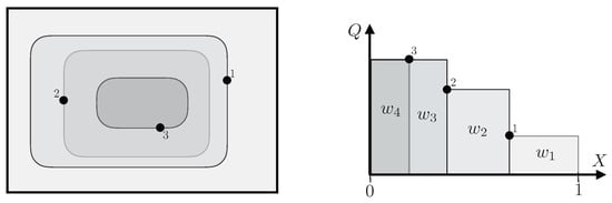The next step is to discard the “wrong” points with and select a second location randomly from the surviving possibilities. Being similarly random, ’s rank marks a random fraction of those , with (Figure 2).