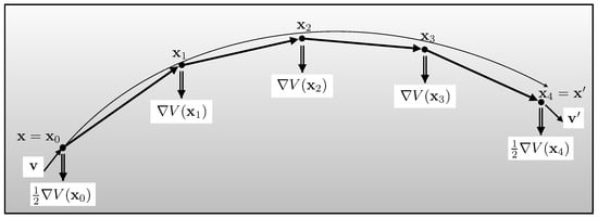 To make the trajectory reversible and increase the accuracy order, the impulses are halved at the start and end , but even this does not ensure full accuracy because the dynamics has been approximated (Figure 8).