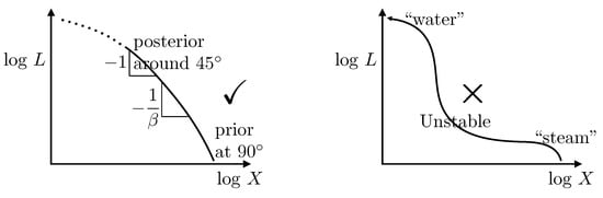 Nested sampling, on the other hand, compresses steadily with respect to the abscissa regardless of the (monotonic) behaviour of , so is impervious to this sort of phase change. Contrariwise, simulated annealing cools through the slope, which need not change monotonically. By using thermal equilibria which average over , simulated annealing views the system through the lens of a Laplace transform, which is notorious for its ill-conditioning. Far better to deal with the direct situation.