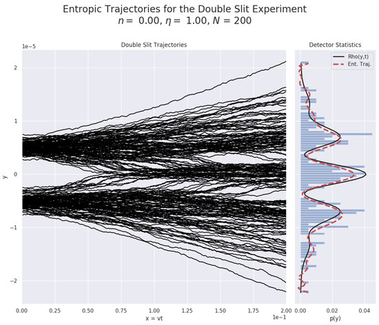 for some integer n and constants and , which control the relative strength of the constraints to the fluctuations. For , the particles follow Brownian trajectories, which in the limit of and recovers the smooth Bohmian trajectories [12].
